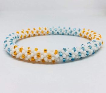 Nepal bracelet Transparent Blue, White and Goldish Beads