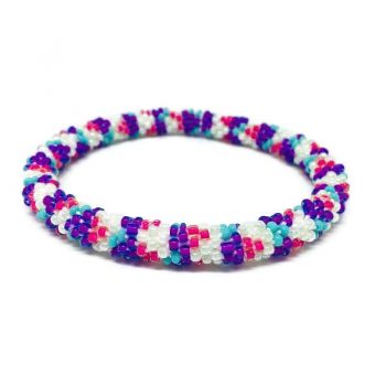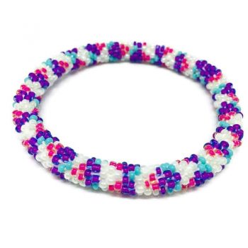 Nepal bracelet made with Purple, White, Teal and Pinkish Beads.